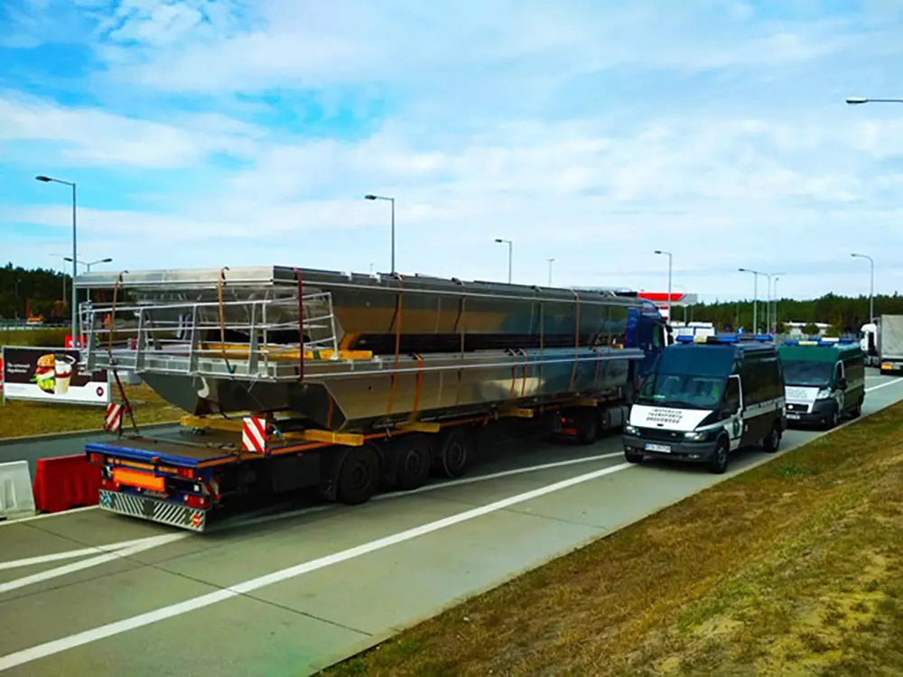 Pojazd wiozący wielkie i szerokie podstawy został zatrzymany do kontroli. Kierowca przedstawił zezwolenie kategorii VI. Uprawnia ono do przejazdu pojazdem nienormatywnym o szerokości nieprzekraczającej 4 m. Tymczasem szerokość podstawy do budowy domów pływających w Holandii wynosiła aż 4,40 m. Na tak ogromny ładunek konieczne jest zezwolenie kategorii VII.