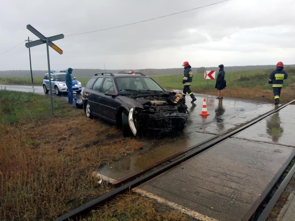 Do niebezpiecznego zdarzenia doszło na przejeździe kolejowym w Popowie. Kierujący wjechał oplem pod pociąg. Nic mu się nie stało.