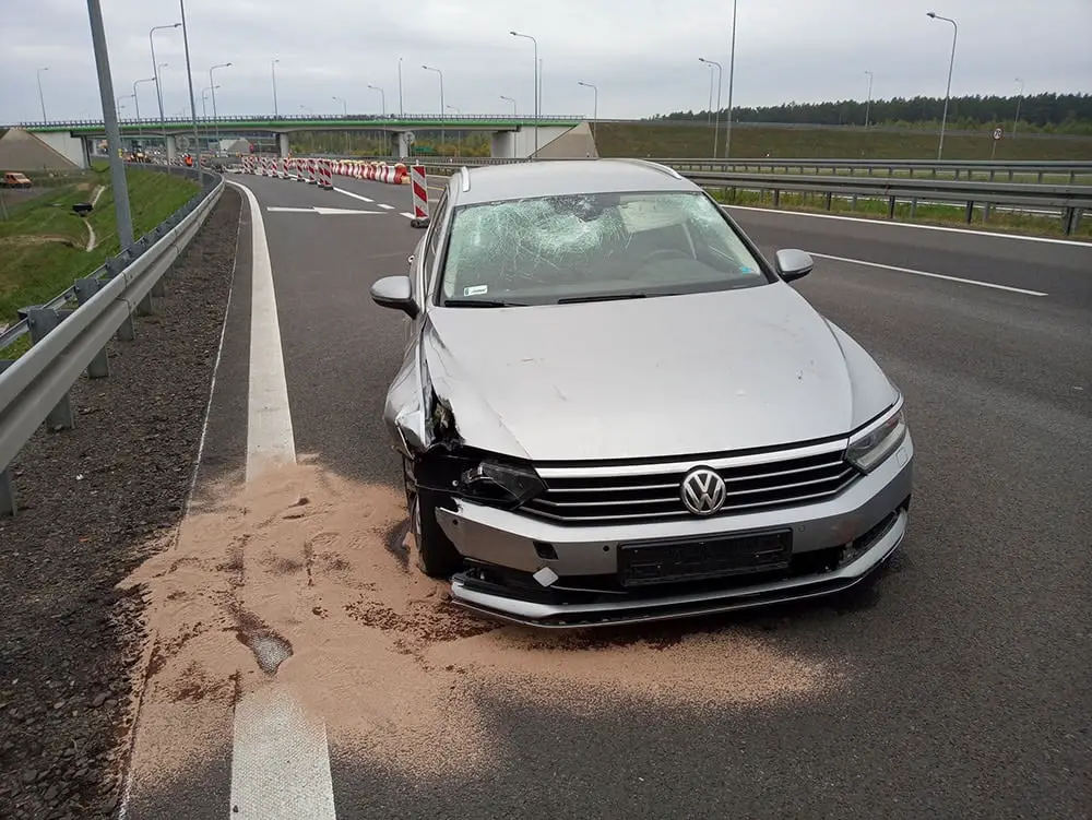 Kierujący volkswagenem passatem jechał w kierunku Zielonej Góry. Najprawdopodobniej zagapił się i wtedy uderzył w pachołki ustawione na drodze. Uszkodził jednak mocno przód samochodu. Na miejsce przyjechał wóz OSP Skwierzyna. Strażacy i obsługa S3 za pomocą sorbentów usunęli z jezdni płyny, które wyciekły z uszkodzonego auta. Nikomu nic się nie stało.