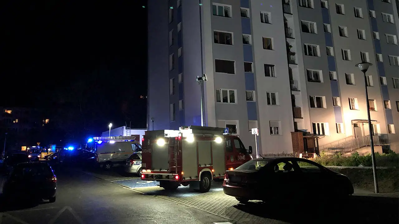 Godz. 3:00 – Jak poinformował nas st. kpt. Arkadiusz Kaniak, sytuacja została opanowana. Wyciek gazu został zlokalizowany i uszczelniony. Wyciek miał miejsce na 5. metrze rury dochodzącej do wieżowca. Wszystkie media ,oprócz gazu, zostały ponownie podłączone, mieszkańcy zostali wpuszczeni do budynku.