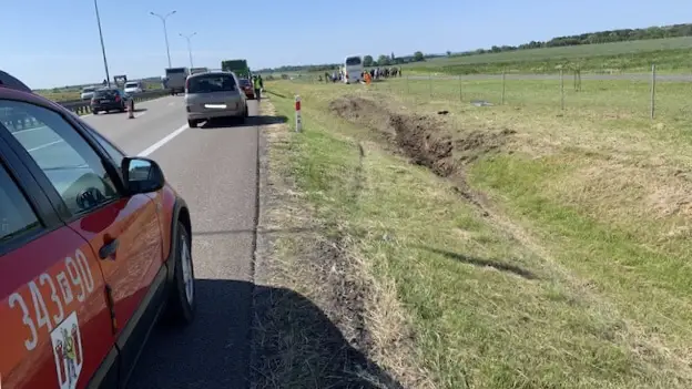 Autobus z dziećmi w wieku 12 lat podczas jazdy przebił barierkę ochronną i wypadł z drogi. Autobus na szczęście nie przewrócił się. Na miejscu są służby ratunkowe.