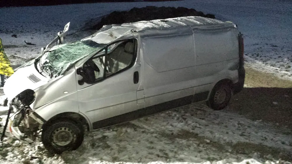 Kierujący busem z niewyjaśnionych jeszcze przyczyn wypadł w poślizg. Stracił panowanie nad kierownica bus i wypadł z drogi koziołkując na poboczu.