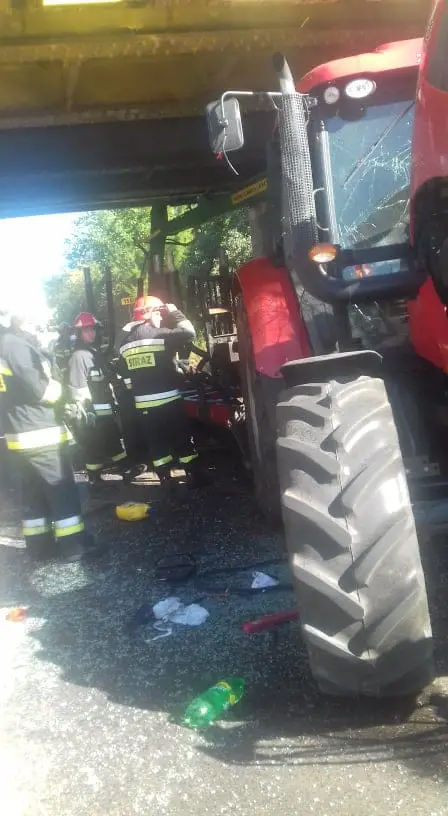 Jak ustaliliśmy, kierujący traktorem z przyczepą wjechał pod wiadukt. Tam przyczepa mocno podskoczyła i uderzyła w wiadukt. Na miejsce zostały wezwana służby ratunkowe. Karetka pogotowia ratunkowego przewiozła do szpitala rannego kierowcę ciągnika.
