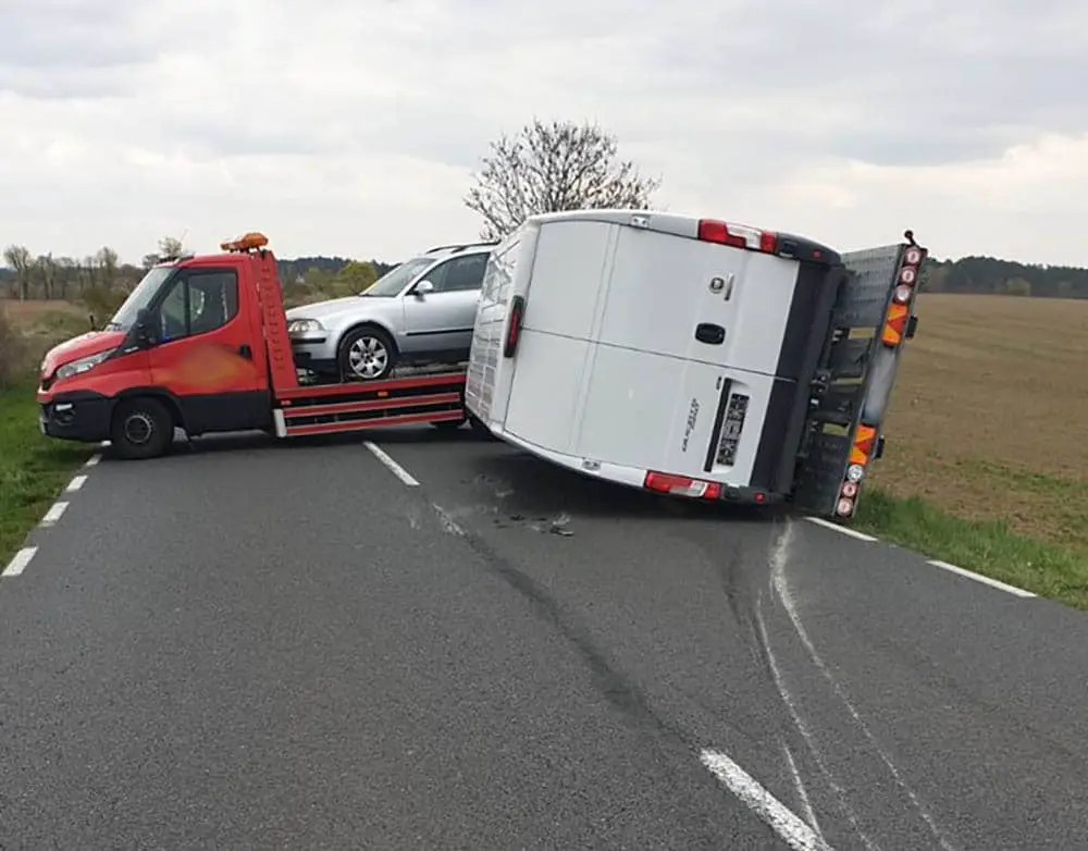 Do wypadku doszło w sobotę, 13 kwietnia, na drodze między Ośnem i Serbowem. Podczas wyprzedzania ciężarówka zahaczyła o lawetę i wypadła z drogi.
