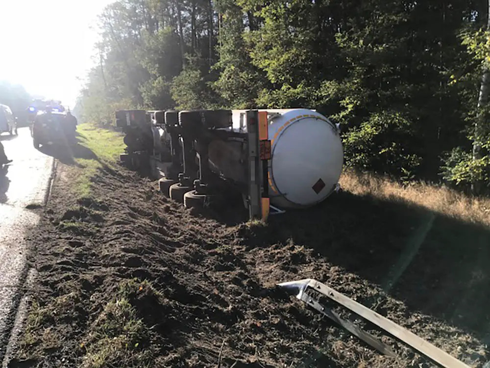Godz. 13.00 Droga w miejscu zdarzenia (Żagań-Nowogród Bobrzański) została zablokowana. – Trwa wyciąganie cysterny z pobocza – mówi podinsp. Małgorzata Barska, rzeczniczka zielonogórskiej policji.