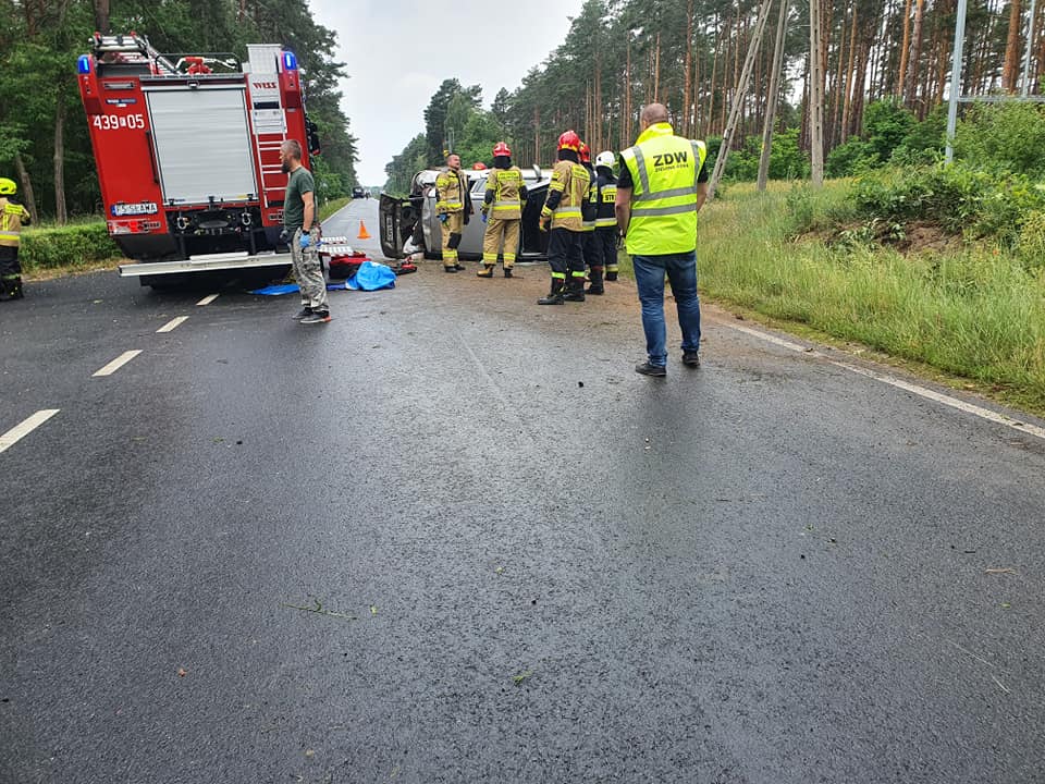 Do poważnego wypadku doszło w piątek, 19 czerwca, na trasie Sława-Lubiatów. Wylądował śmigłowiec Lotniczego Pogotowia Ratunkowego. Dachowała osobówka. Strażacy wycinali z auta dwie osoby.