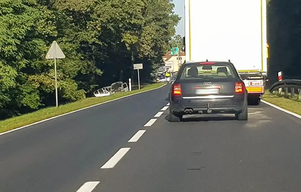 Jedna osoba jadąca renault megane została zabrana do szpitala na badania. Na trasie są niewielkie utrudnienia w ruchu.