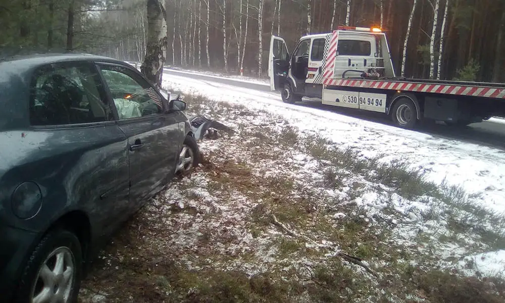 Do wypadku doszło w niedzielę, 27 stycznia, na trasie koło Tarnowa Jeziernego. Kierujący fiatem, chcąc uniknąć uderzenia w zwierzę, wypadł z drogi i rozbił się o drzewo.