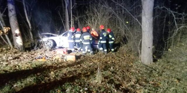 Do poważnego wypadku doszło w sobotę, 17 listopada, w Gorzowie. Kierujący bmw na prostym odcinku drogi wypadł na pobocze i bokiem roztrzaskał się o drzewa. Kierowcę wycinali strażacy.