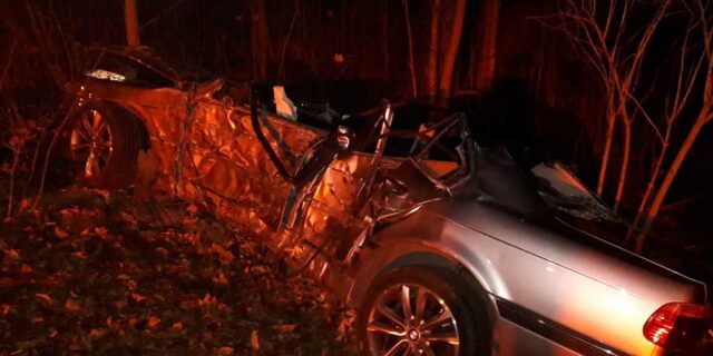 Do wypadku doszło nocą na ul. Słowiańskiej. Kierujący bmw jechał prostym odcinkiem drogi. Z powodu nadmiernej prędkości wypadł z drogi i bokiem uderzył w drzewa.