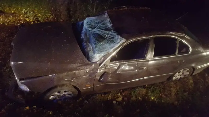 Do wypadku doszło w poniedziałek, 30 października, po godzinie 4.00 nocą. Kierowca bmw uderzył w dzika i dachował na poboczu. Dwie ranne osoby trafiły do szpitala.