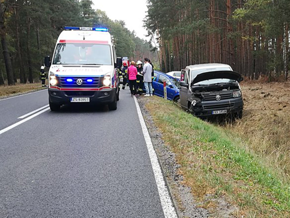 Do wypadku doszło na trasie na odcinku Konotop-Lipka (pow. nowosolski). Zderzyły się volkswagen golf i transporter.