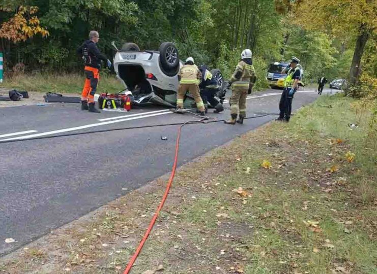 Wiadomo, że kierujący Lexusem wypadł z dogi, uderzył w drzewa i dachował na środku jezdni. Na miejsce wypadku dojechały wozy straży pożarnej, karetka pogotowia ratunkowego oraz gorzowska policja.