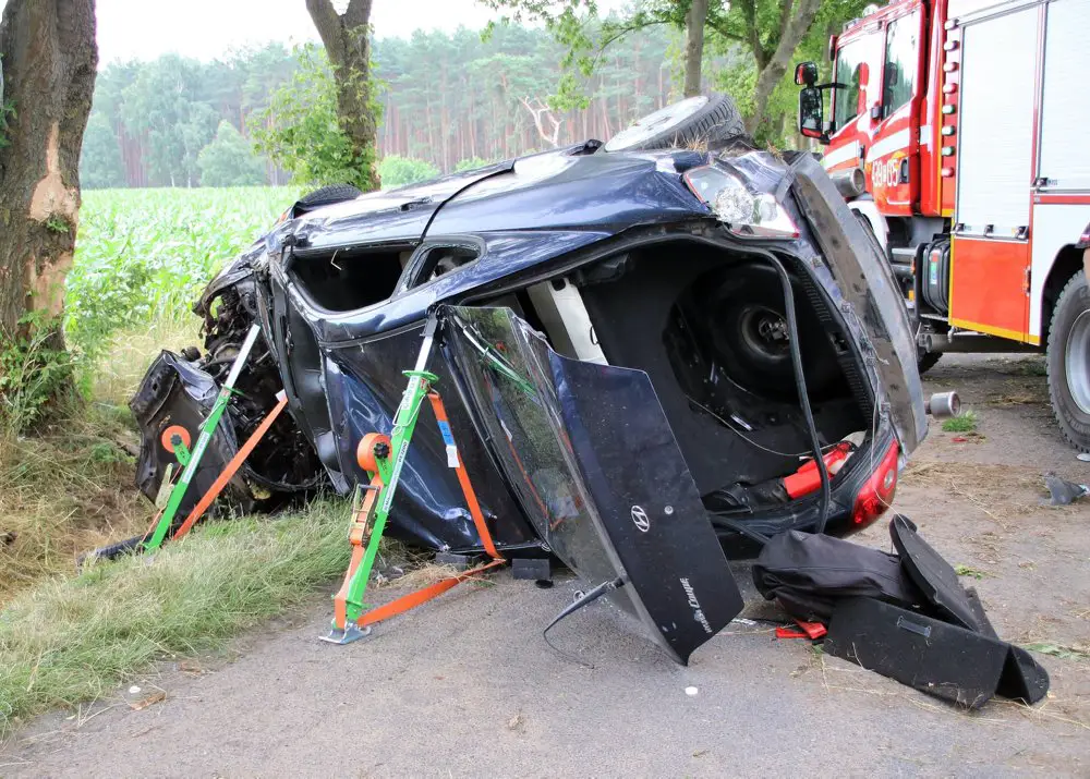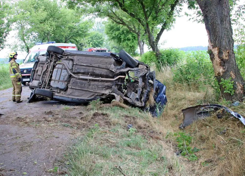 Kobieta kierująca osobówką jechała drogą na odcinku Lipinki-Krążkowo. Nagle wpadła w poślizg i wypadła z drogi uderzając w drzewo. Po uderzeniu w drzewo samochód przewrócił się.
