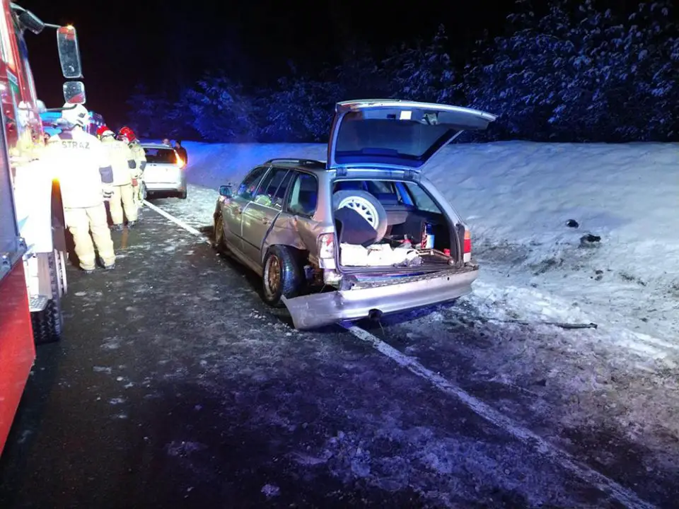 Do wypadku doszło w sobotę, 30 stycznia, na trasie koło Świdnicy pod Zieloną Górą. Zderzyły się mercedes i bmw. Sprawca jest pijany.
