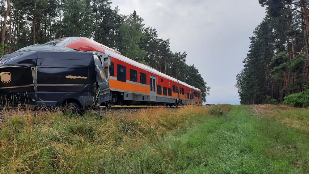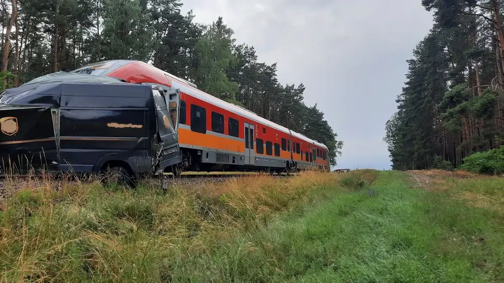 Okazało się, że kurier busem wjechał pod szynobus na przejeździe kolejowym w miejscowości Kuźnik. Doszło do mocnego zderzenia.
