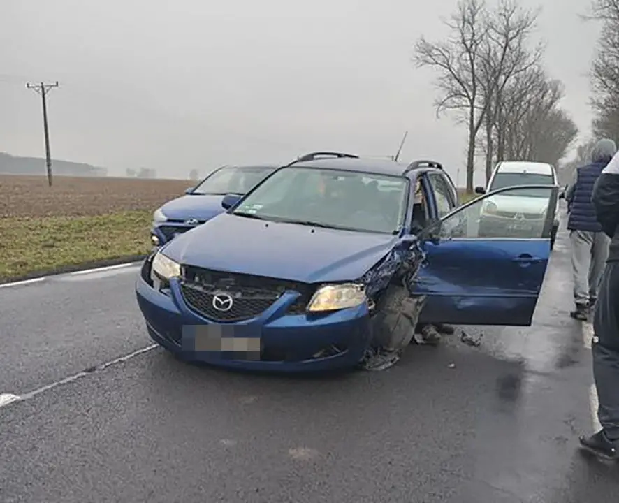 W końcu doszło do zderzenia. Mazda uderzyła w jadącego z naprzeciwka volkswagena. Kierowca mazdy nie mógł wysiąść z auta. Był tak pijany, że bełkotał i ledwo stał na nogach.