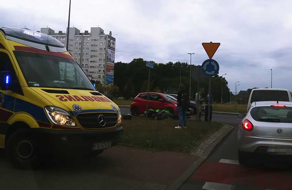 Do wypadku doszło w czwartek, 13 września, z samego rana na rondzie Piłsudskiego w Gorzowie. Motocyklista uderzył w toyotę. Na miejscu jest karetka pogotowia ratunkowego.