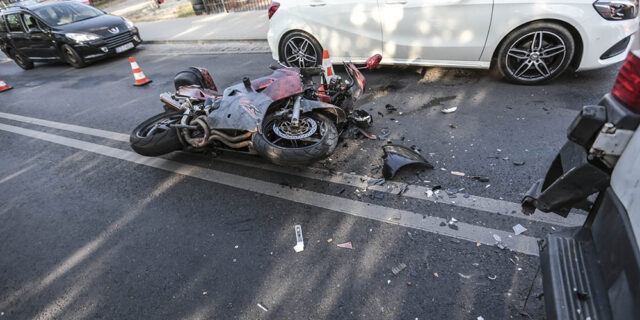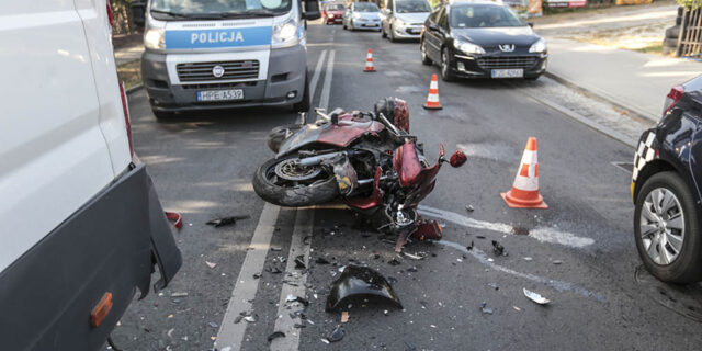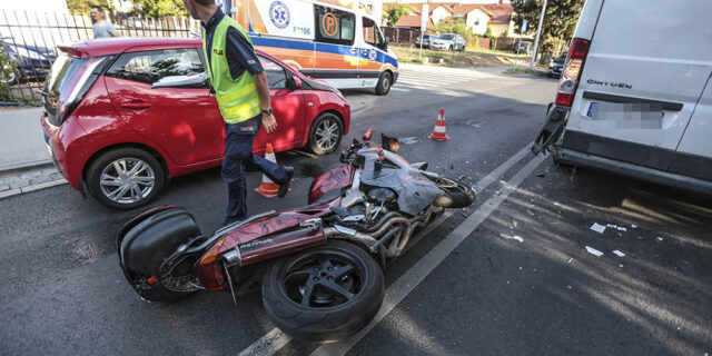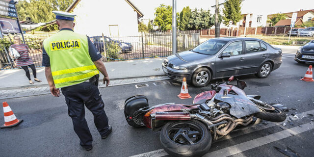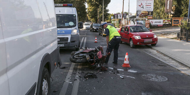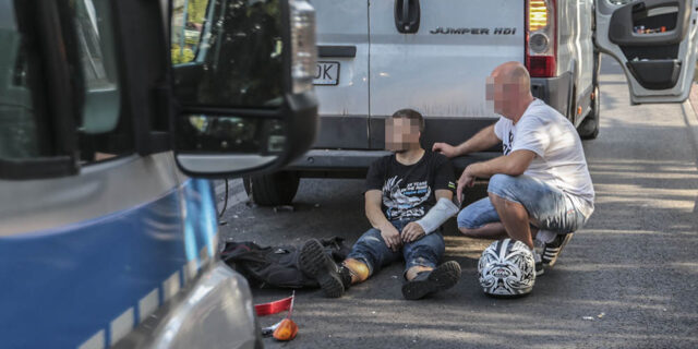 Ranny motocyklista został zabrany do szpitala przez ekipę karetki pogotowia ratunkowego.