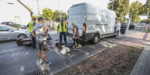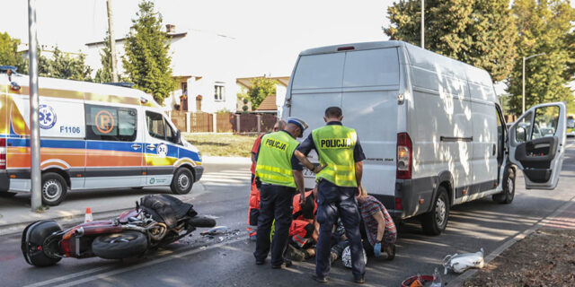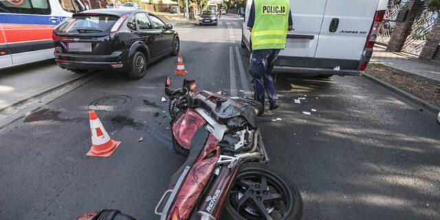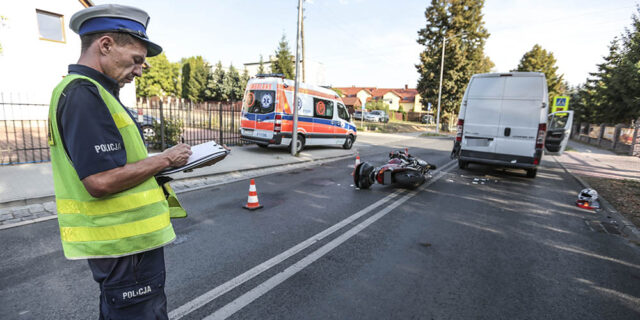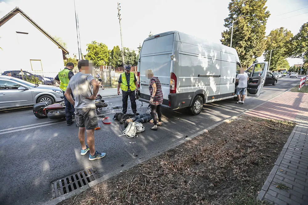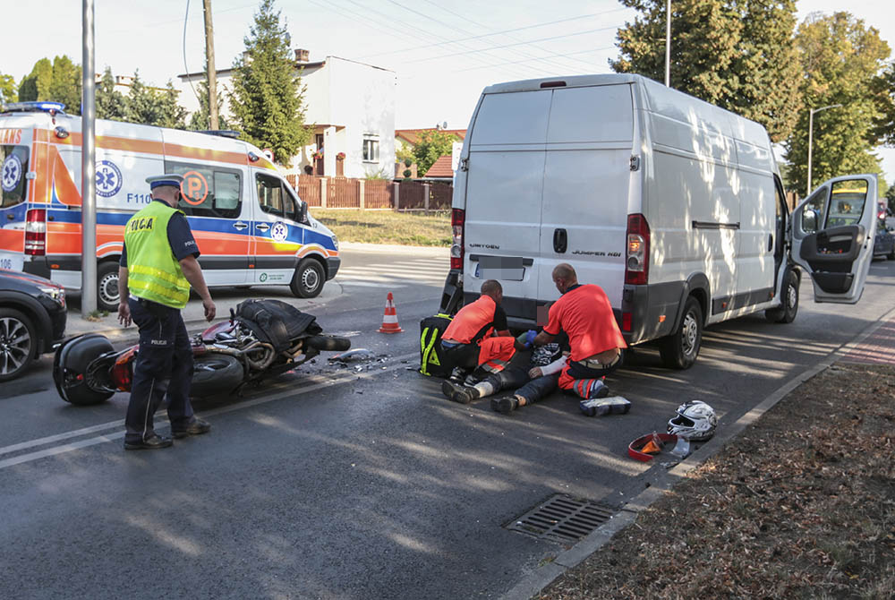 Do wypadku doszło w czwartek, 23 sierpnia, na ul. Kożuchowskiej. Kierujący motocyklem nie zauważył skręcającego busa i mocno uderzył w jego tył. Mężczyzna został przewieziony do szpitala.