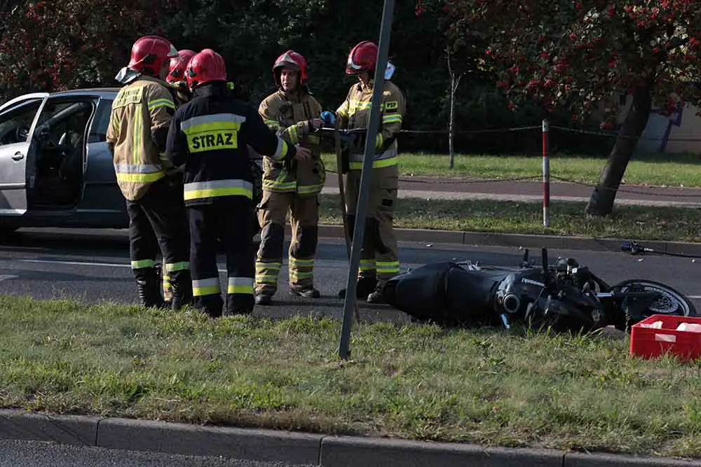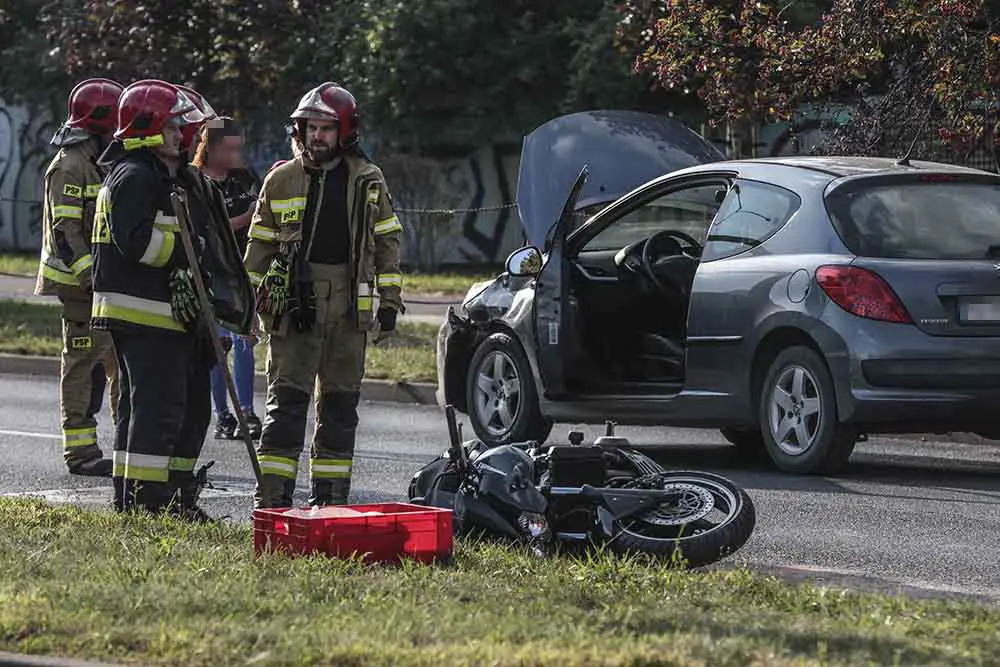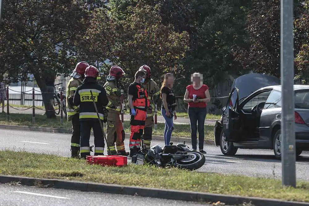 Do wypadku doszło w środę, 16 września, na ul. Łużyckiej koło aresztu śledczego. Motocyklista zderzy się z peugeotem. Na miejscu są służby ratunkowe.