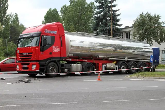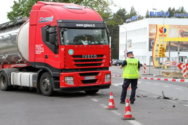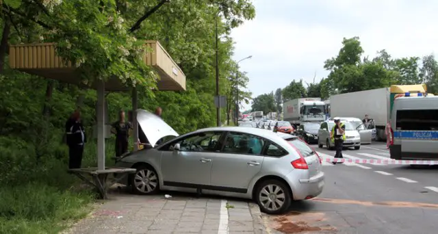 Lewym pasem jechał citroen C4. Ciężarówka zajechała drogę kobiecie kierującej citroenem. Wtedy doszło do zderzenia. Citroen po uderzeniu przez ciężarówkę odbił się i wpadł na przystanek autobusy. Na szczęście nikogo tam nie było.