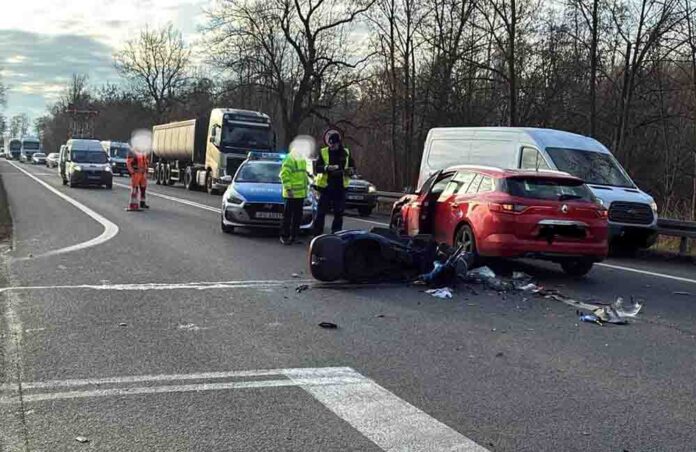 Zdarzenie miało miejsce na skrzyżowaniu drogi krajowej nr 92 z drogą prowadzącą do Kupinina. W wyniku zderzenia motocyklisty z samochodem osobowym jedna osoba, motocyklista, doznała obrażeń i została przewieziona do szpitala.
