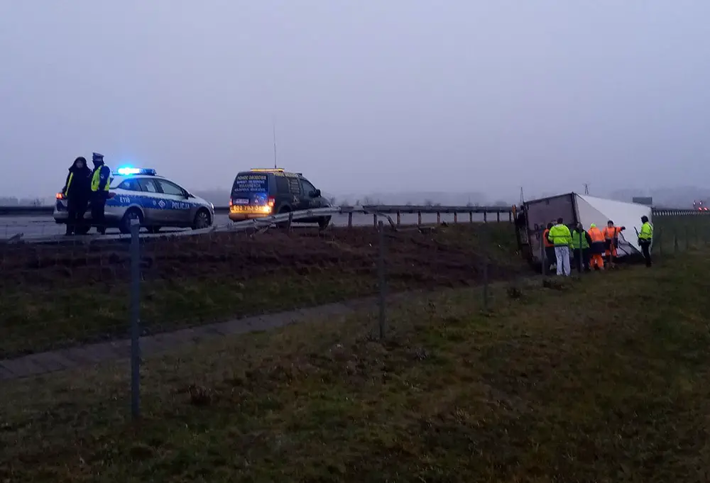 Do zdarzenia doszło po godz. 7.00. Kierujący ciężarowym manem z niewyjaśnionych jeszcze przyczyn zjechał z drogi. Ciężarówka wpadła do rowu i tam przewróciła się.