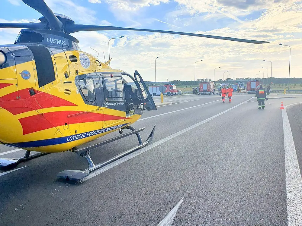 Do wypadku doszło na trasie za Chełmskiem, na łączniku S3. Zderzyły się mercedes i volkswagen. Na miejscu wylądował śmigłowiec lotniczego pogotowia ratunkowego.