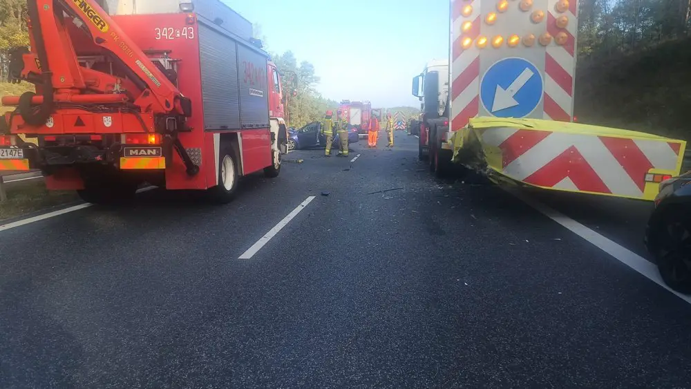 Do poważnego wypadku doszło w środę, 23 października, na trasie S3 koło Zielonej Góry. Peugeot uderzył w samochód służby drogowej. Na miejscu są służby ratunkowe.