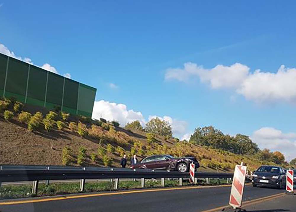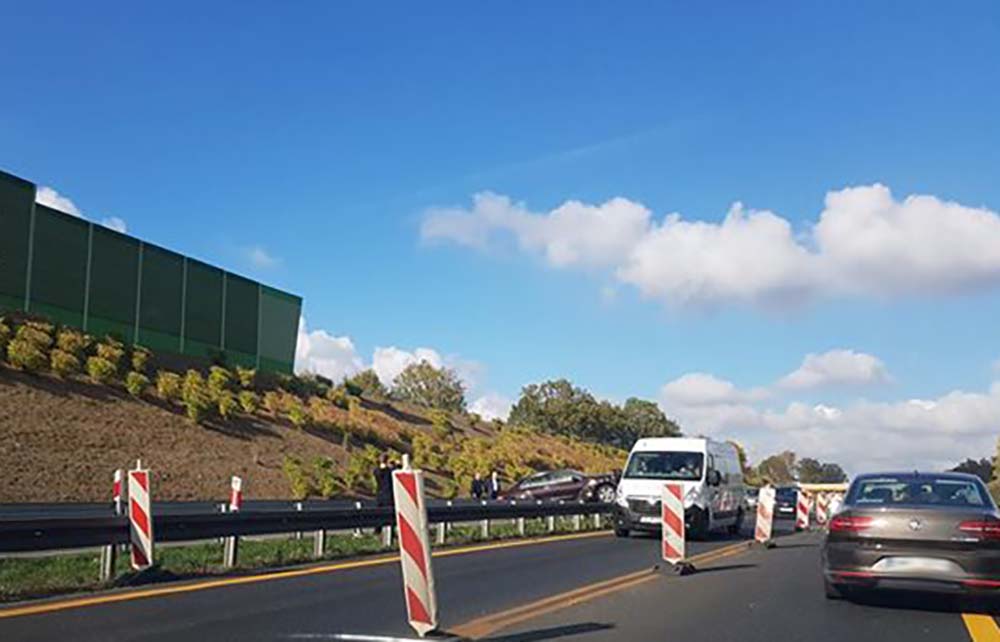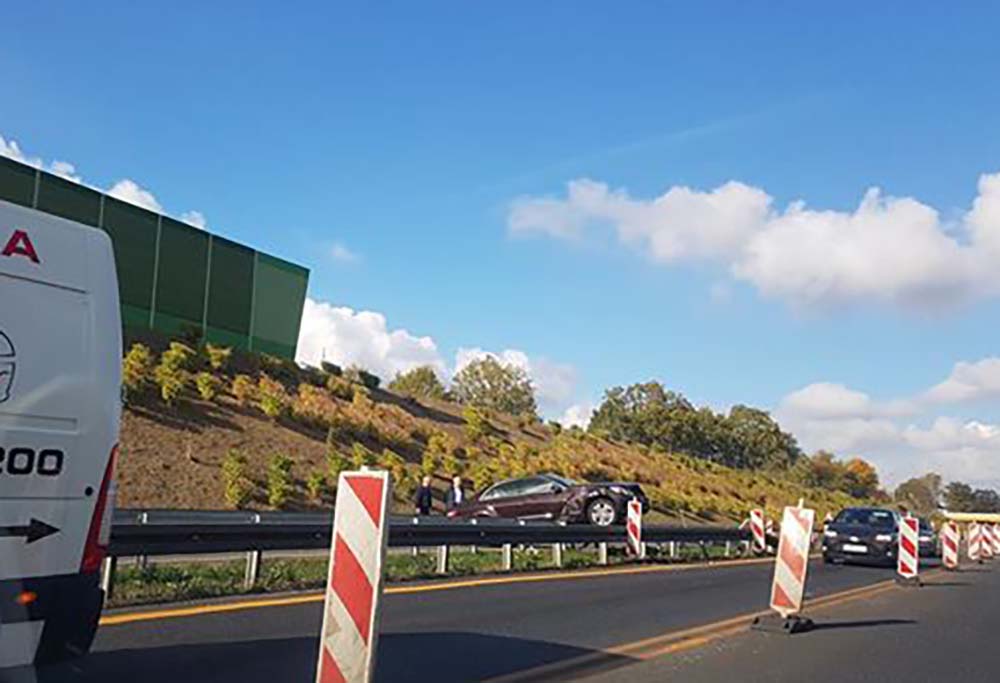 Do zdarzenia doszło ok. godz. 13.00. Na miejscu jest już zielonogórska policja. Kierujący skodą podczas jazdy wypadł z drogi. Skoda uderzyła w barierki i zawisła na nich.