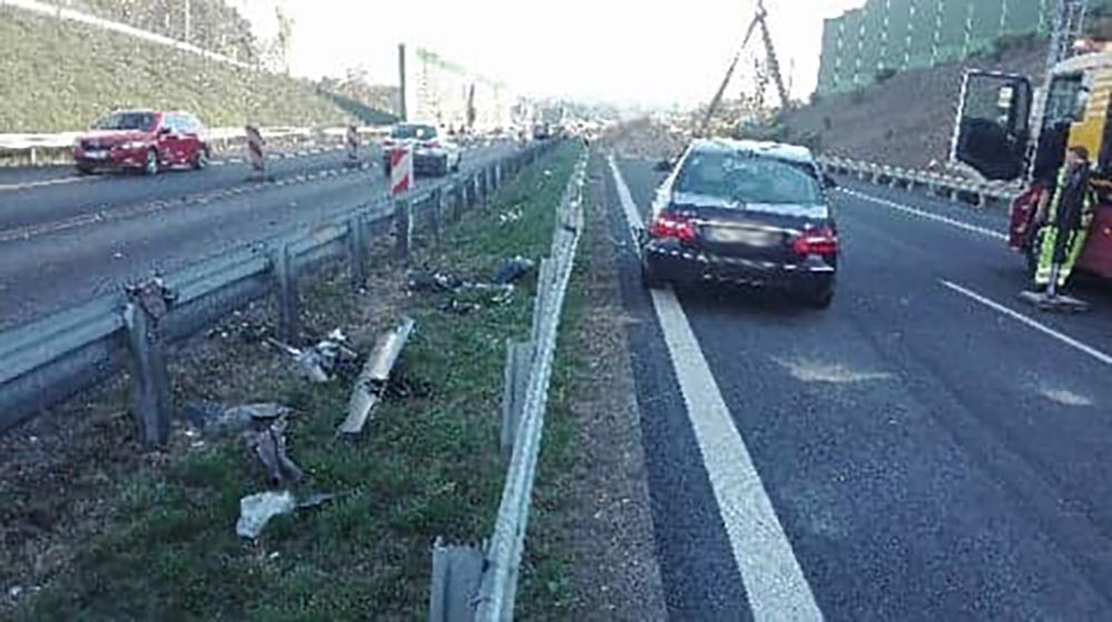 Do wypadku doszło w niedzielę, 21 października, na S3 przy moście nad Odrą. Skoda uderzyła w barierki i zawisła na nich.