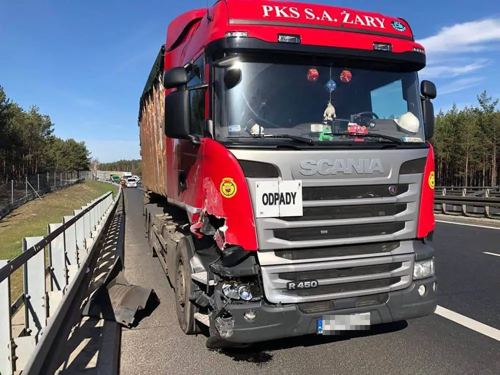Jak ustaliliśmy zablokowane są pasy ruchu w kierunku Zielonej Góry. W stojącego na pasie awaryjnym citroena berlingo uderzył samochód ciężarowy.