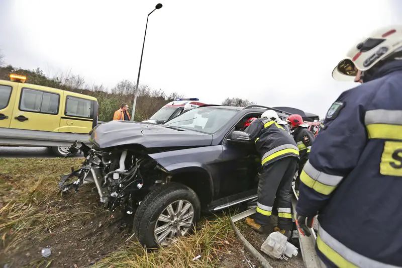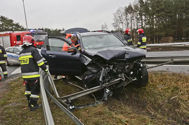 Luksusowy mercedes wart kilkaset tysięcy złotych jechał drogą S3 w kierunku Nowej Soli. Na wysokości stacji benzynowej kierowca rozpędzonego mercedesa pojechał prosto na lekkim łuku. Samochód jadący z dużą szybkością rozbił się o barierki.