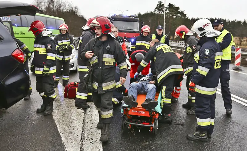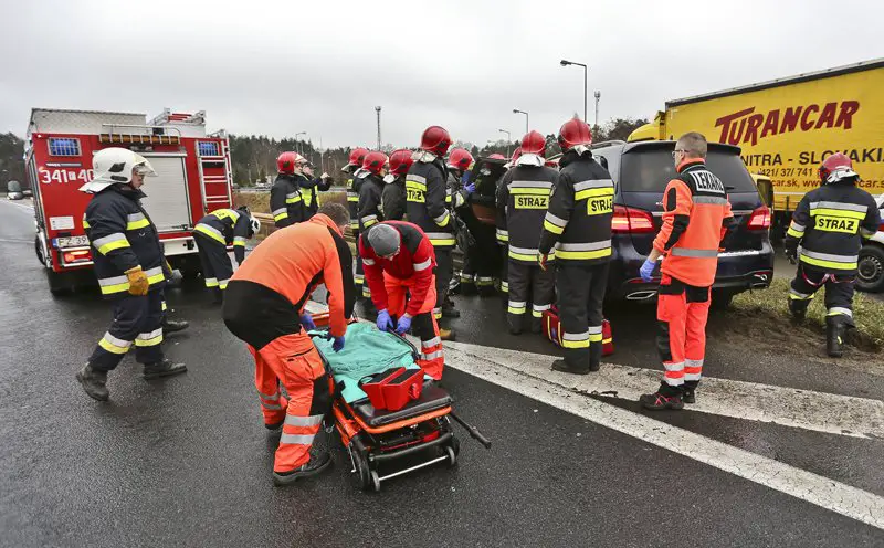 Na miejsce wypadku zostały wezwane służby ratunkowe. Ranny kierowca samochodu nie był w stanie samodzielnie wysiąść z auta. Został zakleszczony w rozbitym mercedesie. Mężczyznę uwolnili strażacy. Po chwili został zabrany do karetki pogotowia ratunkowego. Z kierowcą w karetce do szpitala pojechał policjant.