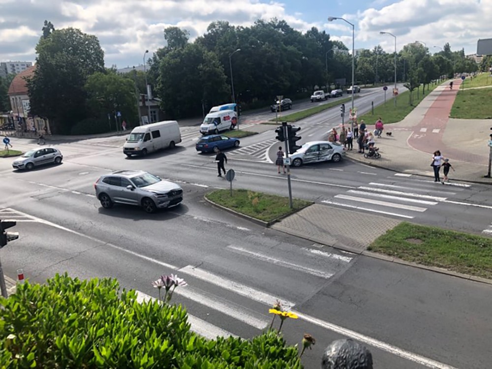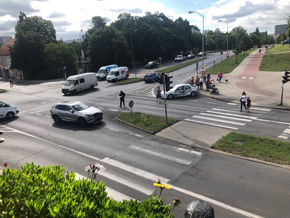 Do wypadku doszło we wtorek, 23 lipca, na skrzyżowaniu ulic Zacisze, Wojska Polskiego i Wyszyńskiego. Dwie osoby są ranne.