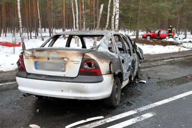 Do wypadku doszło w poniedziałek około godz. 12.00 na trasie Zielona Góra-Nowogród Bobrzański. Kobieta jadąca toyotą corollą na łuku drogi straciła panowanie nad kierownicą. Samochód obróciło i wtedy doszło do zderzenia z oplem vectrą. Po zderzeniu opel zapalił się. Toyota wypadła daleko za drogę. Opla zgasili strażacy, którzy dotarli na miejsce zdarzenia. Opel spłonął doszczętnie.