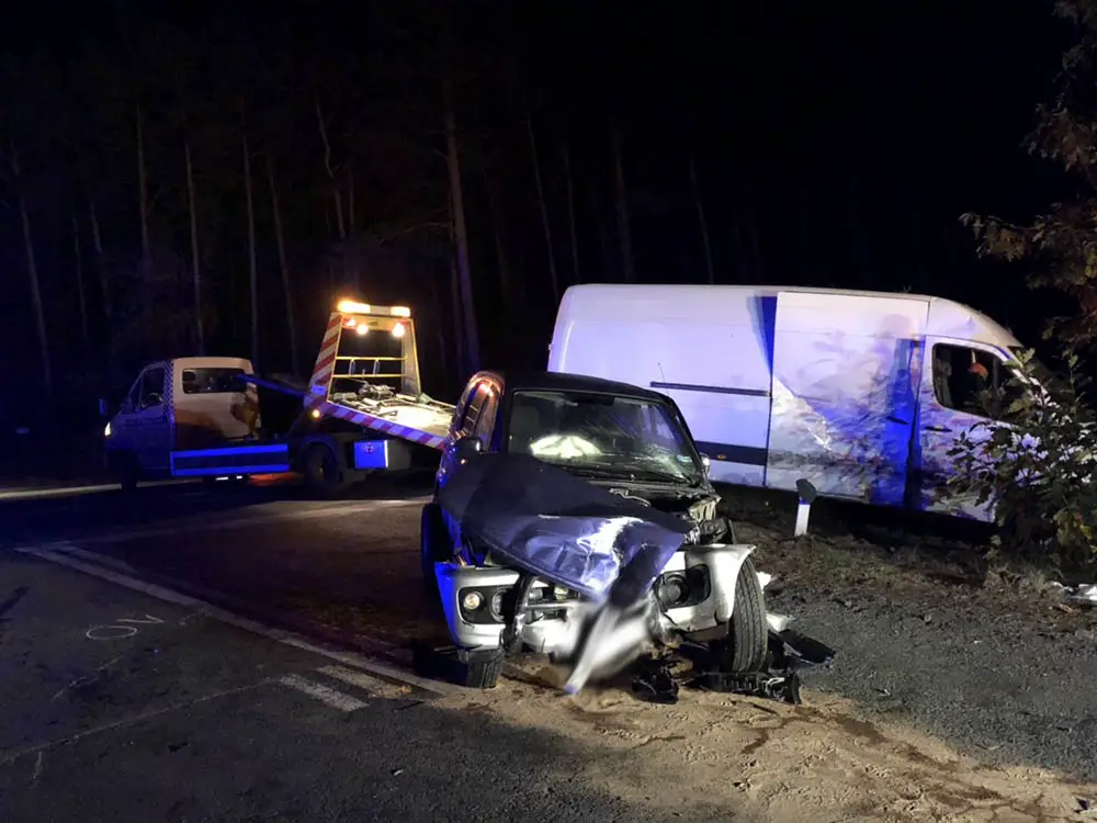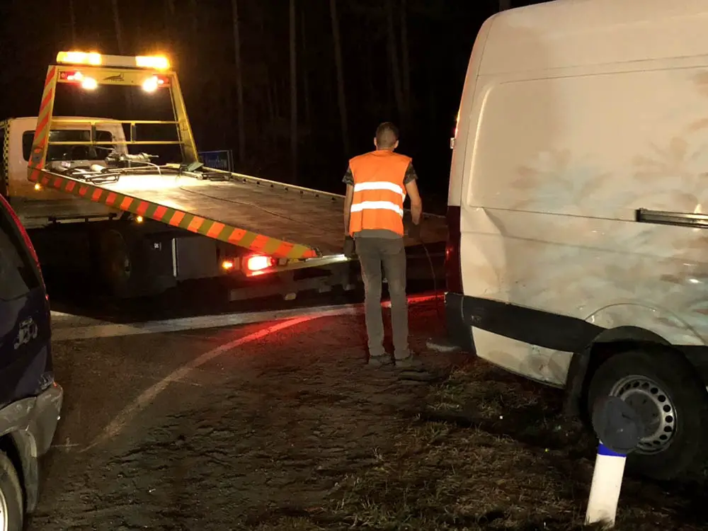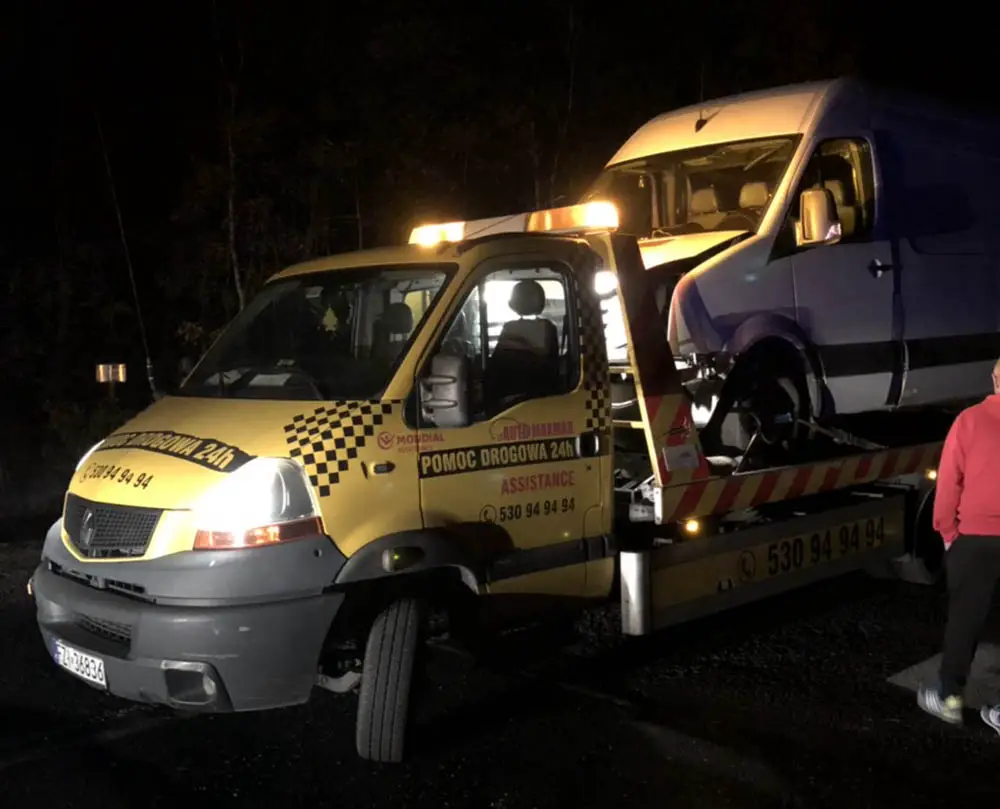 Na polecenie policji rozbite samochody zostały zabezpieczone. Ciemne miejsce wypadku swoimi halogenami oświetliła pomoc drogowa Maxmar z Zielonej Góry. – Staraliśmy się jak najszybciej zabrać rozbite samochody, żeby nie utrudniać ruchu na trasie – mówi Marek Dziubałka z pomocy drogowej Maxmar. Bus trzeba było wyciągać z pobocza.