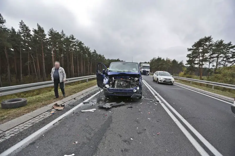 Wszystko wydarzyło się na pasie jezdni w kierunku Zielonej Góry. Kierujący busem młody mężczyzna najprawdopodobniej zagapił się. Bus z dużą siła uderzył w tył samochodu dostawczego. Mocno uderzony „dostawczak” wpadł na tył bmw, które pchnięte uderzyło jeszcze w tył audi.