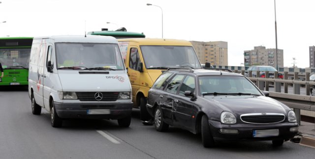 Na wiadukcie zderzyły się dwa busy i ford scorpio. Zderzenie nie było mocne. Jedna osoba została jednak zabrana do szpitala. Uskarżała się na ból kręgosłupa.