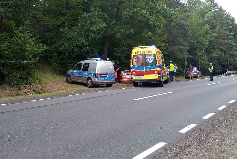 Kierująca citroenem jechała drogą koło Różanek. Zaczęła skręcać w lewo w leśną drogę chcąc zawrócić. Wtedy w bok citroena uderzył kierujący nissanem, który wyprzedzał pojazdy. Po zderzeniu oba samochody wypadły z drogi. Na miejsce wypadku przyjechały służby ratunkowe. Jedna osoba z nissana została karetką przewieziona do szpitala.