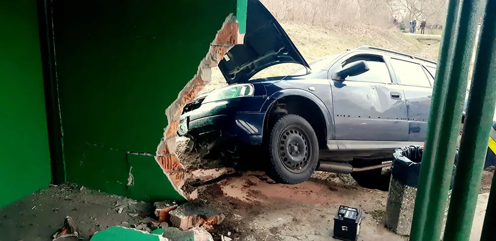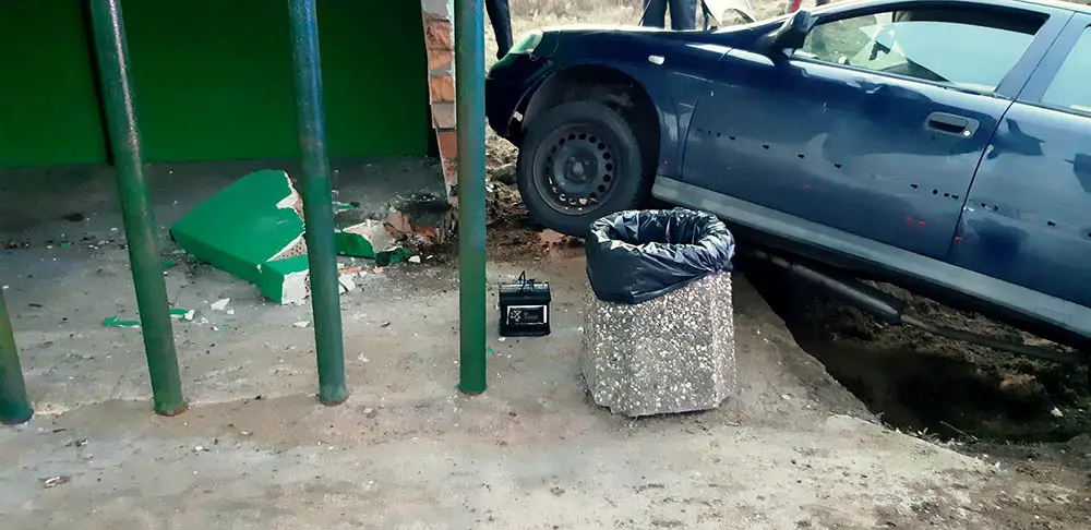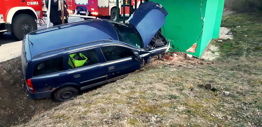 Kierowca opla astry wypadł z drogi i z dużą siłą uderzył w przystanek autobusowy. Siła uderzenia była duża. Rozbity został samochód oraz uszkodzony murowany przystanek.