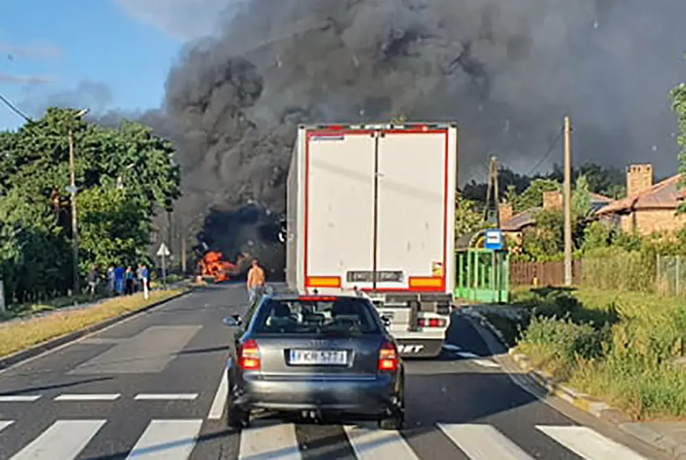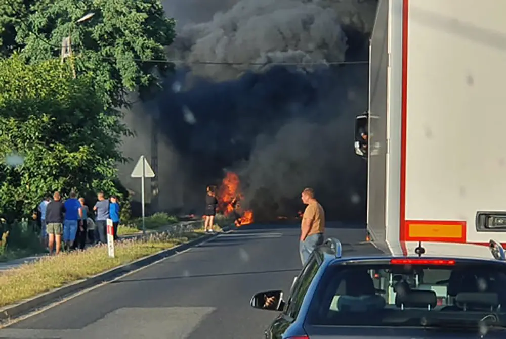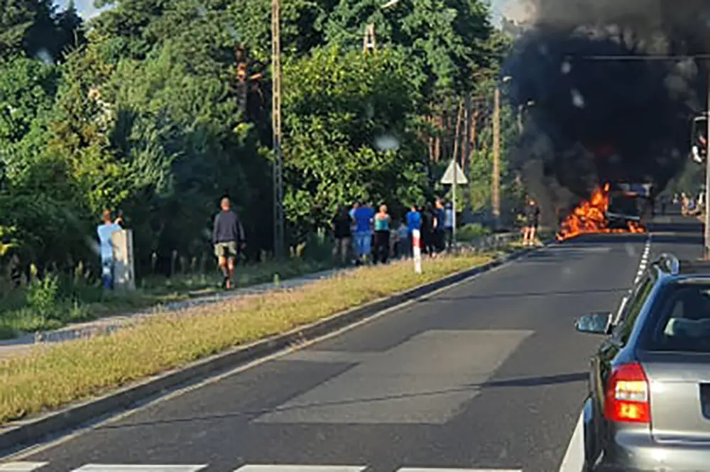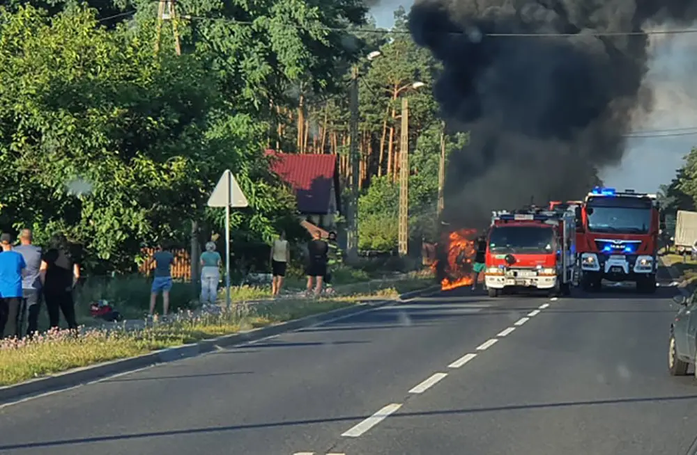 Jeden z samochodów natychmiast stanął w płomieniach.