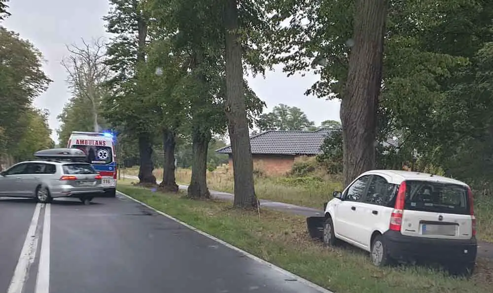 Kierująca fiatem jechała drogą w kierunku Zatonia. Z niewyjaśnionych jeszcze przyczyn wpadła w poślizg. Zjechała z drogi i uderzyła w przydrożne drzewo. W samochodzie wystrzeliły poduszki powietrzne. Na miejsce zdarzenia dojechały karetka pogotowia ratunkowego, wozy straży pożarnej i zielonogórska policja. – Kobieta kierująca fiatem został karetką przewieziony do szpitala – mówi podinsp. Małgorzata Stanisławska, rzeczniczka policji w Zielonej Górze.