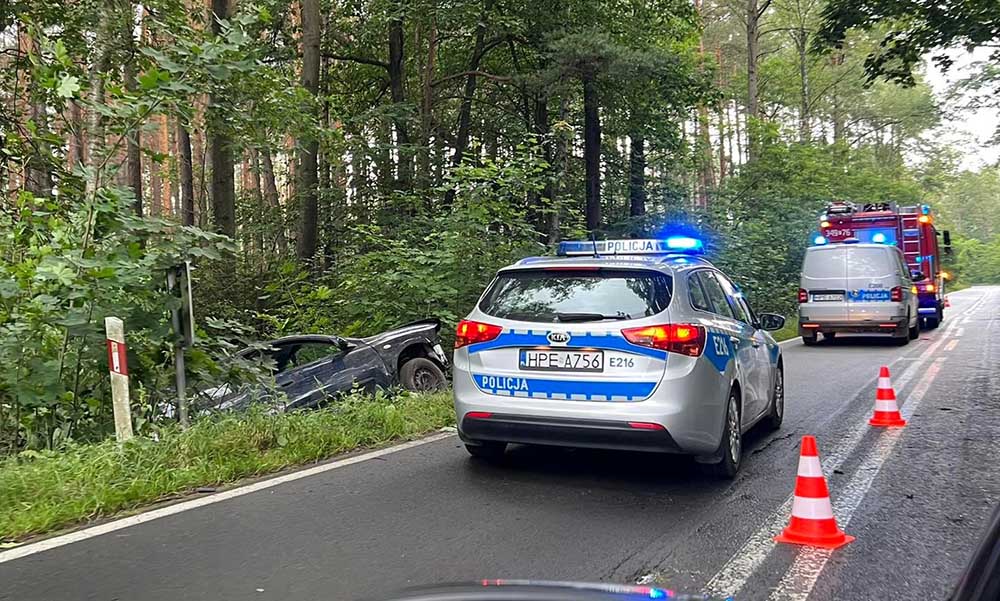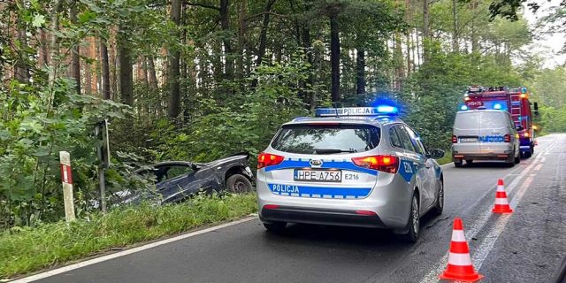 Do wypadku doszło w czwartek, 7 lipca, na drodze koło Jeleniowa pod Zieloną Górą. Samochód wypadł z drogi i uderzył w drzewo. Ranna jedna osoba.
