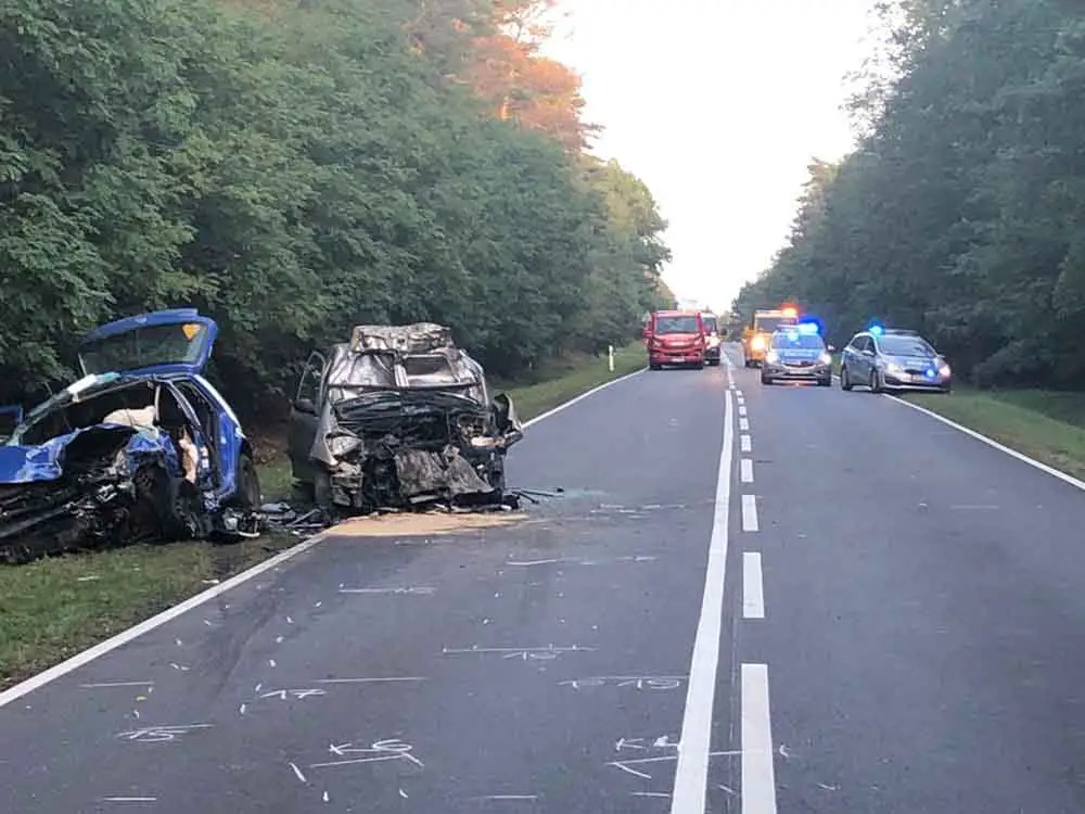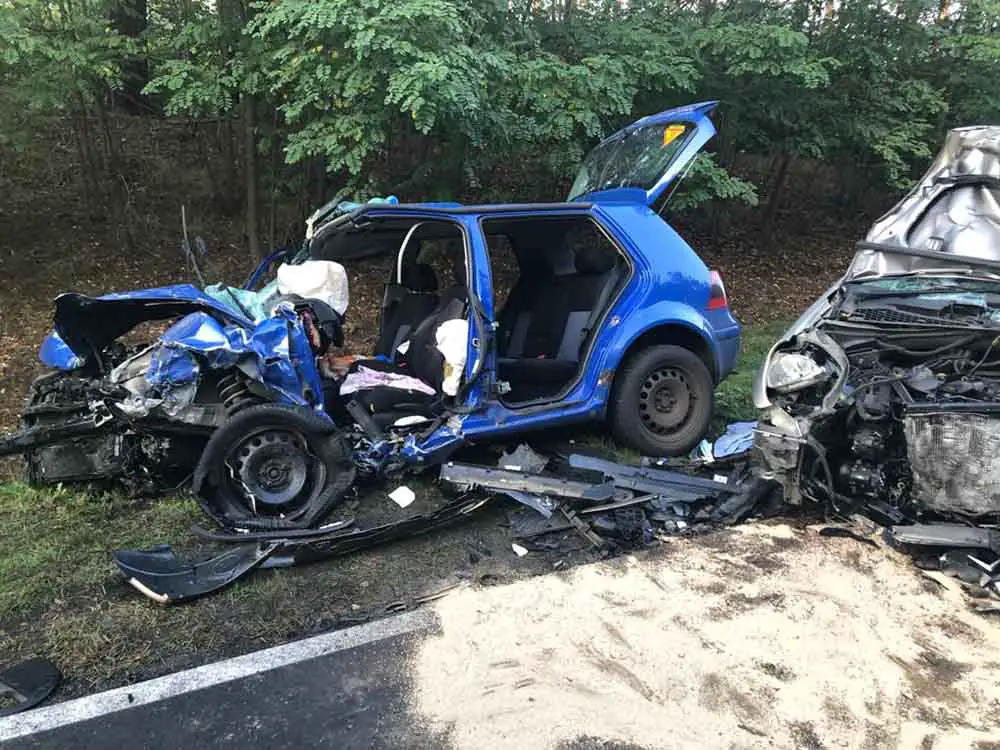 Jadący z naprzeciwka kierowca audi widząc co się dzieje, zdążył zareagować i otarł się z volkswagenem wypadając z drogi. – Jadący za audi citroen zderzył się czołowo z volkswagenem – mówi sp. sztab. Gramatyka. Siła zderzenia była ogromna. Oba pojazdy zostały bardzo mocno rozbite. Kierowców z samochodów uwalniali strażacy rozcinając karoserie.