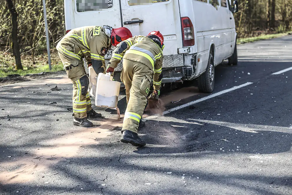 W oplu był kierowca. W busie kierowca i pasażerka. – Jedna osoba z lekkimi obrażeniami została zabrana do karetki – mówi st. kpt. Kaniak.