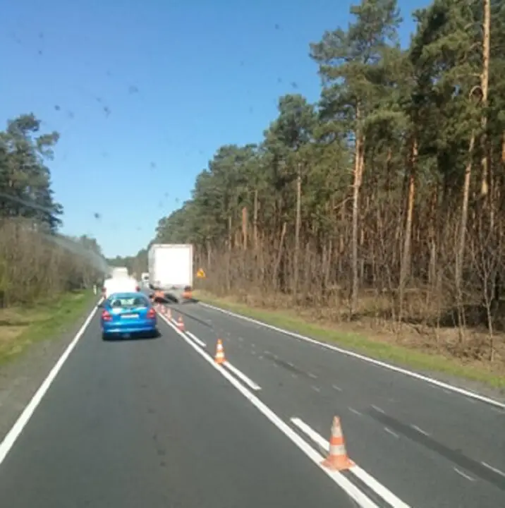 Przy Leśniowie Wielkim trwają roboty drogowe. Przed światłami zatrzymały się dwa busy. Niestety, nie zauważył tego kierujący ciężarówką i uderzył w tył busa. Uderzony bus wpadł na busa stojącego przed nim. Na miejsce przyjechały służby ratunkowe. Jedna osoba z busa z urazem ręki została karetką przewieziona do szpitala w Zielonej Górze. Na miejscu jest zielonogórska policja. – Na drodze w miejscu zdarzenia został wprowadzony ruch wahadłowy – mówi podinsp. Małgorzata Barska, rzeczniczka policji w Zielonej Górze.