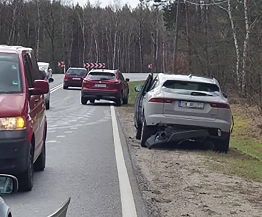 Do wypadku doszło w czwartek, 8 kwietnia, na drodze do Nowogrodu Bobrzańskiego. Kierujący renault laguną uderzył w tył jaguara.