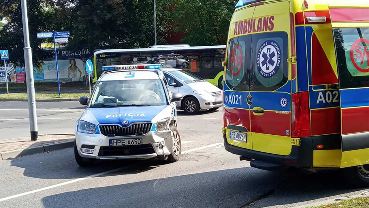 Radiowóz gorzowskiej policji zderzył się z fiatem. Fiat po zderzeniu wypadł z drogi.